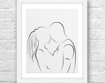 Pretty Black And White Abstract Couple In Love Silhouette Drawing
